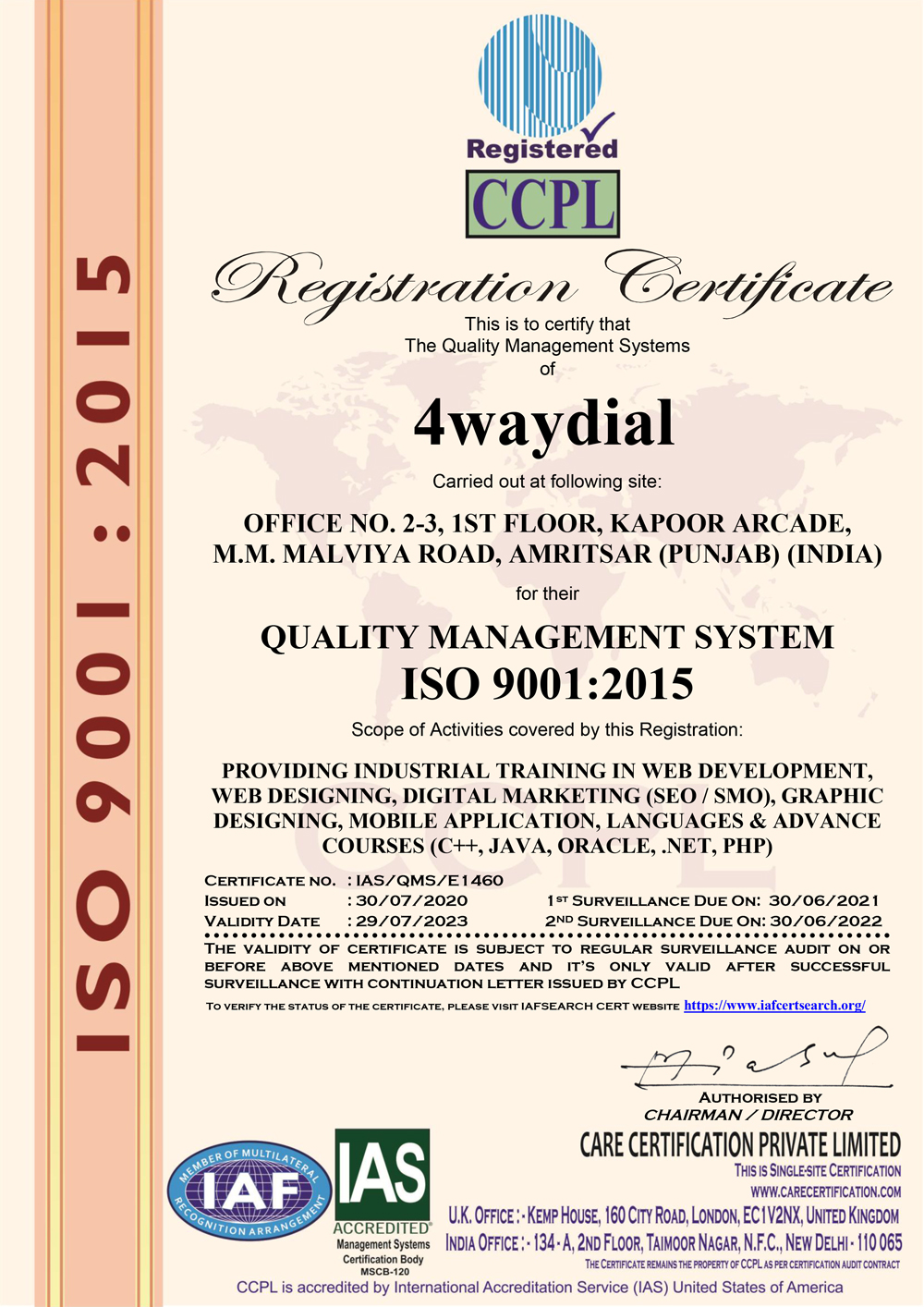 4Waydial Pvt. Ltd. is an ISO-9001- 2008 certified organization, catering to the unique individual business needs of the clients.With our innovative business model, we're also recognized as a startup initiative by the Department for Promotion of Industry and Internal Trade(DPIIT)in the year 2019.